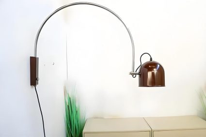 Le bras en arc est l’élément distinctif de ce luminaire. Il permet de déporter la source lumineuse du point de fixation mural vers le centre de l’espace lounge ou vers une zone spécifique, comme au-dessus d’un fauteuil ou d’une table basse.